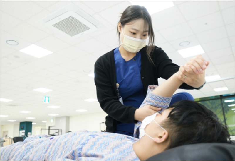 뇌, 척수 손상 환자를 대상으로 일어서고 걸을 수 있도록 자세를 조절하고, 본인이 선택적인 움직임을 할 수 있도록 합니다.