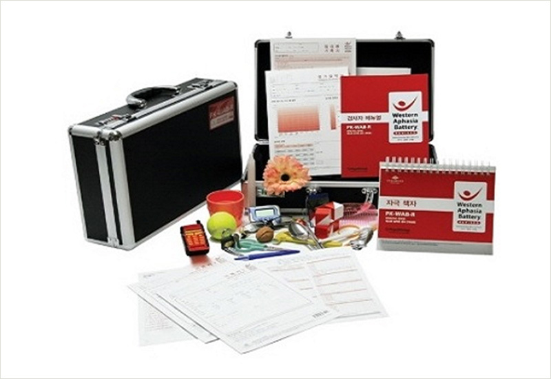 PK-WAB-R 뇌졸중, 치매 혹은 기타 후천적인 신경학적 장애로 인해 발생한 환자의 의사소통 기능을 개별적으로 평가하여 정확한 실어증 유무의 판단, 실어증 정도에 대한 객관적인 판정이 가능한 표준화한 언어적, 비언어적 능력 평가 검사도구입니다.