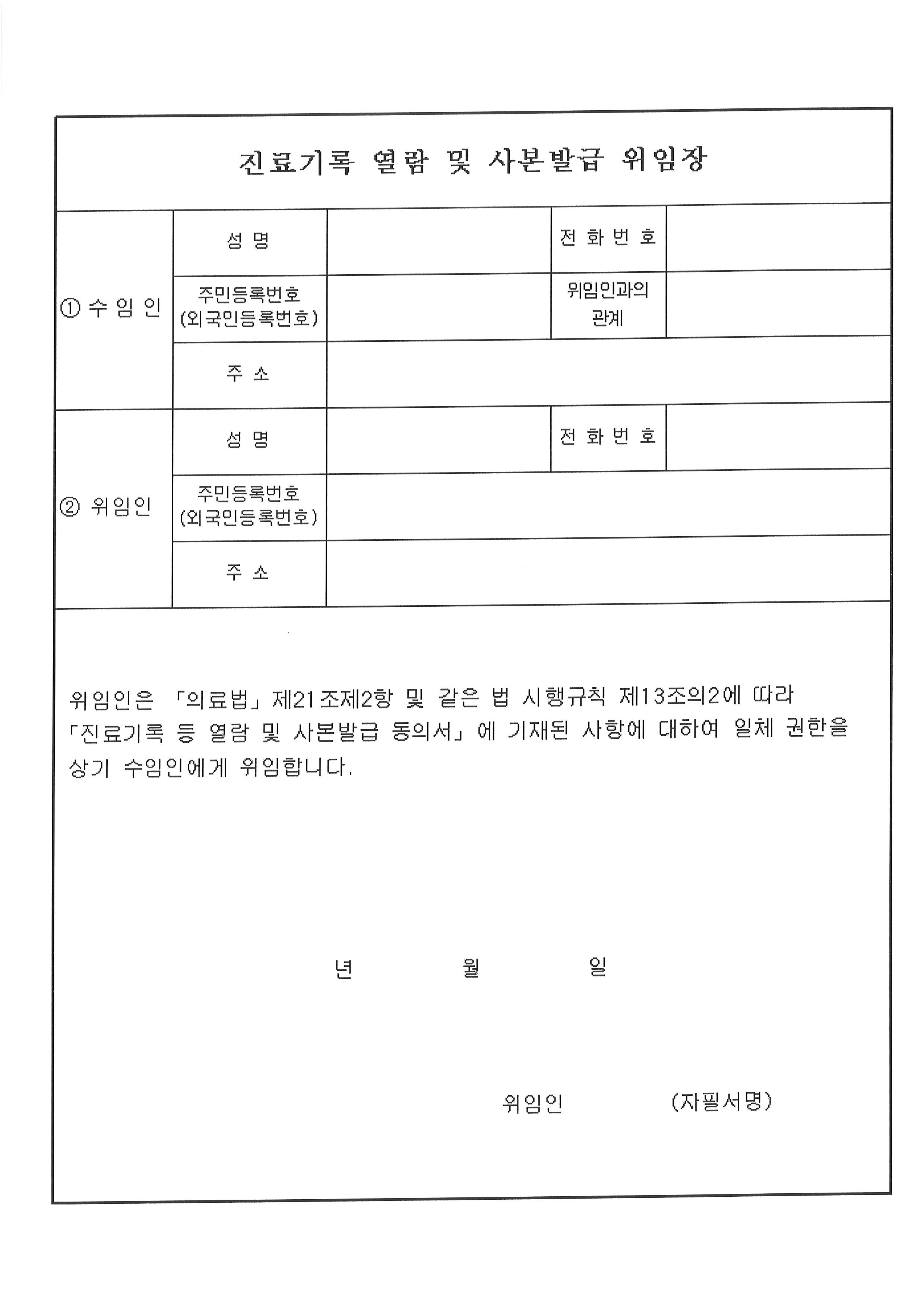 | 환자가 자필 서명한 위임장 | |